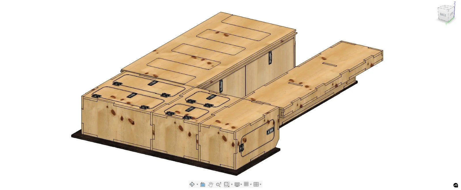 Designed and built in Australia, every component is CNC-cut for precision, giving you a perfect fit every time. The system features a slide-out sleeping platform, generous internal storage, and a modular layout that lets you position your fridge and electrical exactly where you want them — no locked-in configurations.